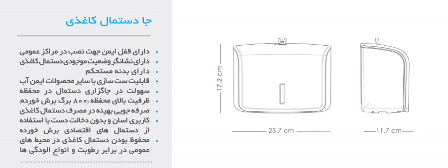 جا دستمالی فلهای مدل 300 دارای ظرفیت مناسب برای استفاده روزمره در مکانهای پرتردد است: