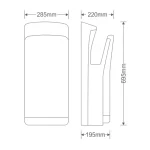 دست خشککن TURBO 2X با طراحی ایستاده، ظاهر مدرن و ابعاد استاندارد، در هر سرویس بهداشتی جلوهای شیک و حرفهای ایجاد میکند. این محصول در رنگهای سفید، نقرهای و طلایی تولید شده تا با هر نوع دکوراسیون هماهنگ باشد.