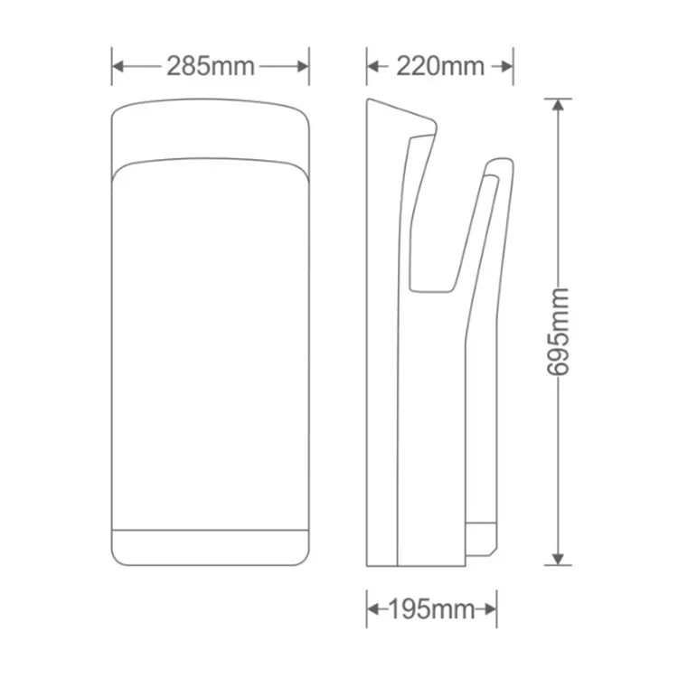 دست خشککن ایستاده TURBO 2X – سفید یکی از قدرتمندترین و سریعترین دست خشککنهای موجود در بازار است که توسط صنعت شرق عرضه میشود. این دستگاه با بهرهگیری از موتور 2000 وات، جریان هوای فوقالعاده قوی و سیستم خشککن خطی، قادر است دستها را تنها در ۷ تا ۸ ثانیه کاملاً خشک کند. همین سرعت بالا، آن را به گزینهای ایدهآل برای مکانهای پرتردد تبدیل کرده است؛ از بیمارستانها و کلینیکها گرفته تا ادارات، اماکن عمومی، سالنهای ورزشی، استخرها و سرویسهای بهداشتی پرتردد.